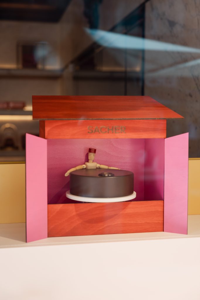 Das Sacher Hotel hat bereits zur Kaiserzeit ihre weltberühmte Sachertorte ausliefern lassen. Anna Sacher war schon immer ihrer Zeit voraus. Deshalb haben wir dieses Thema in unsere Herbst Schaufenster Installation verspielt verpackt.